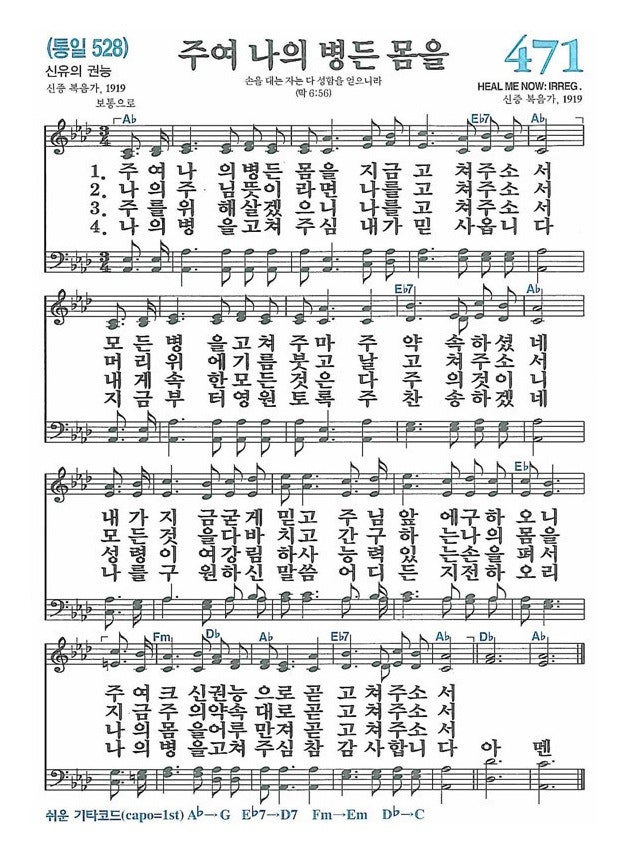 ─ 찬송: 새 471장 주여 나의 병든 몸을