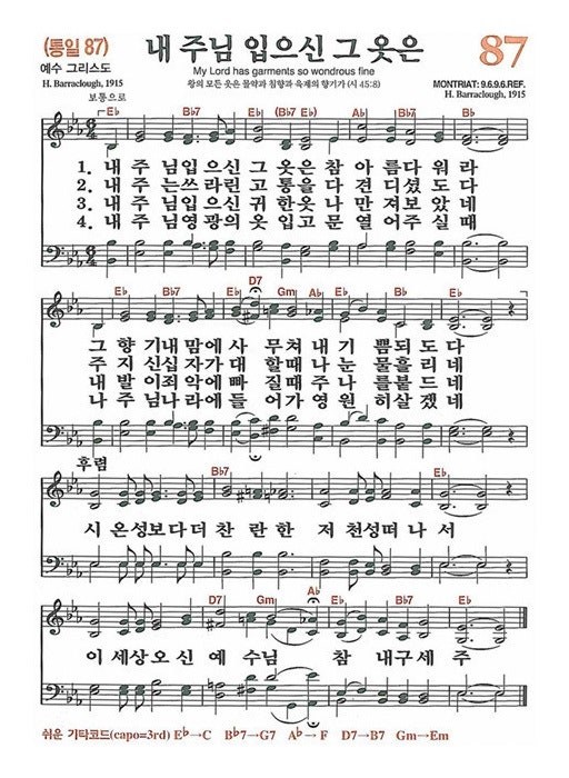 ─ 찬송: 새 87장 내 주님 입은 그 옷