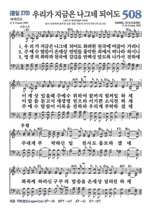 ─ 찬송: 새 508장 우리가 지금은 나그네 되어도