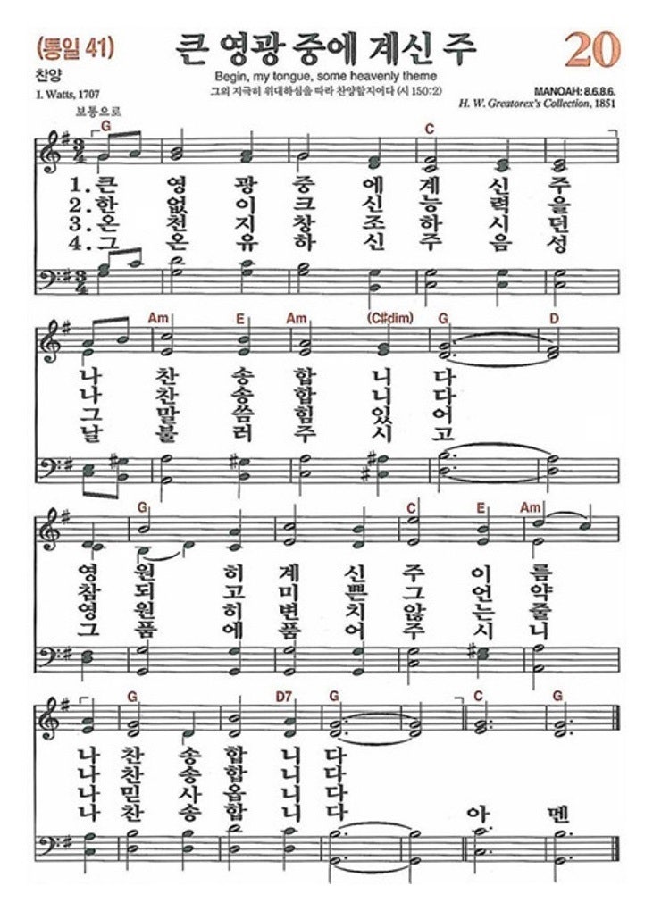 ─ 찬송: 새 20장 큰 영광 중에 계신 주