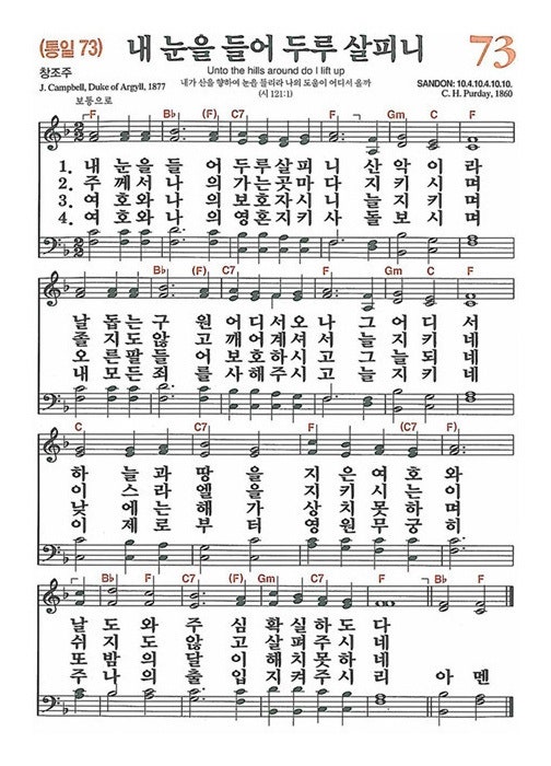 찬송: 새 73장 내 눈을 들어 두루 살피니