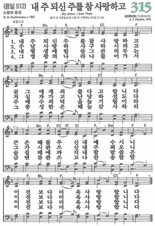 ─ 찬송: 새 315장 내 주 되신 주를 참 사랑하고
